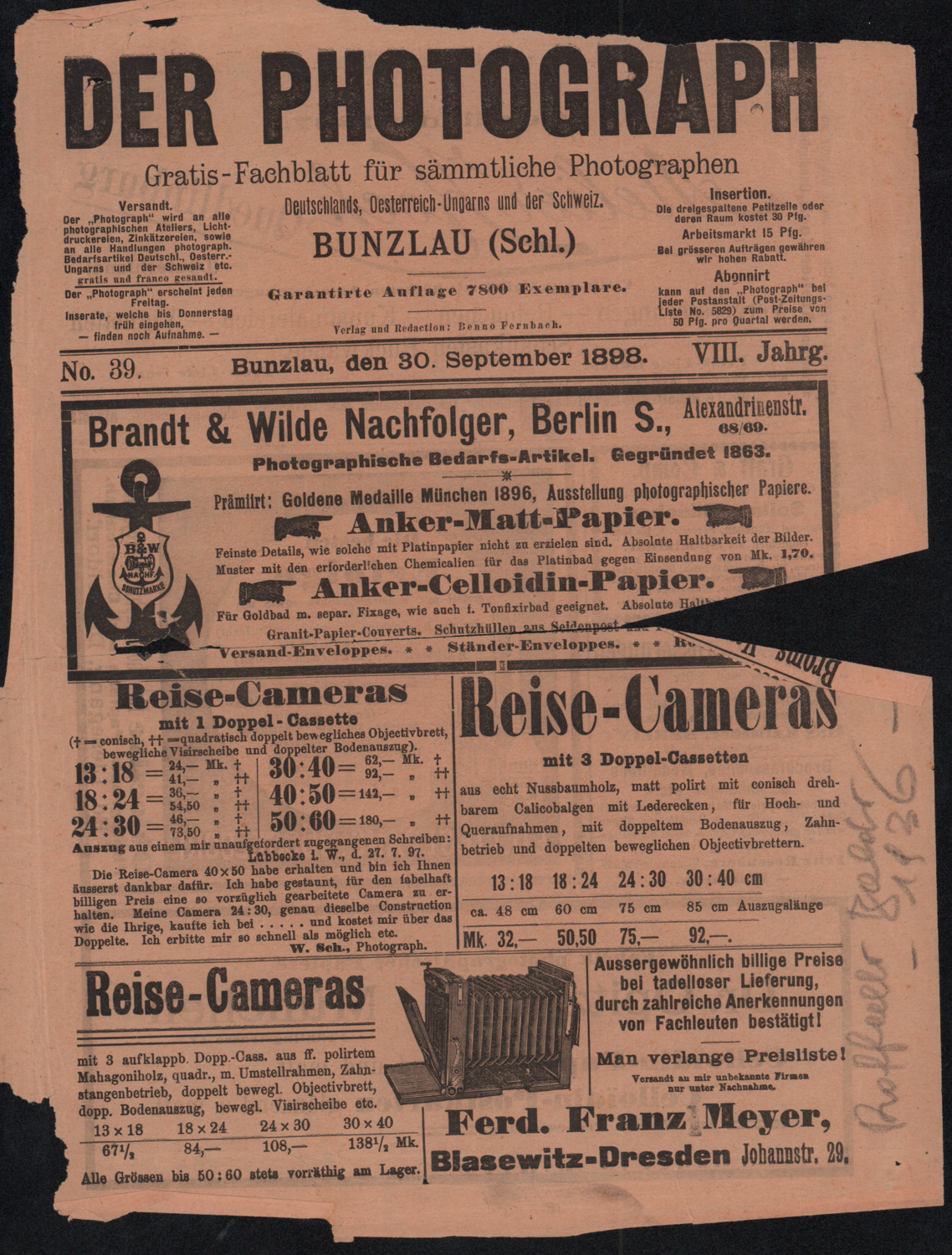F.4.1.4 - Ritaglio del frontespizio della rivista «DerPhotograph», 30 settembre 1898. 1 ritaglio di giornale.