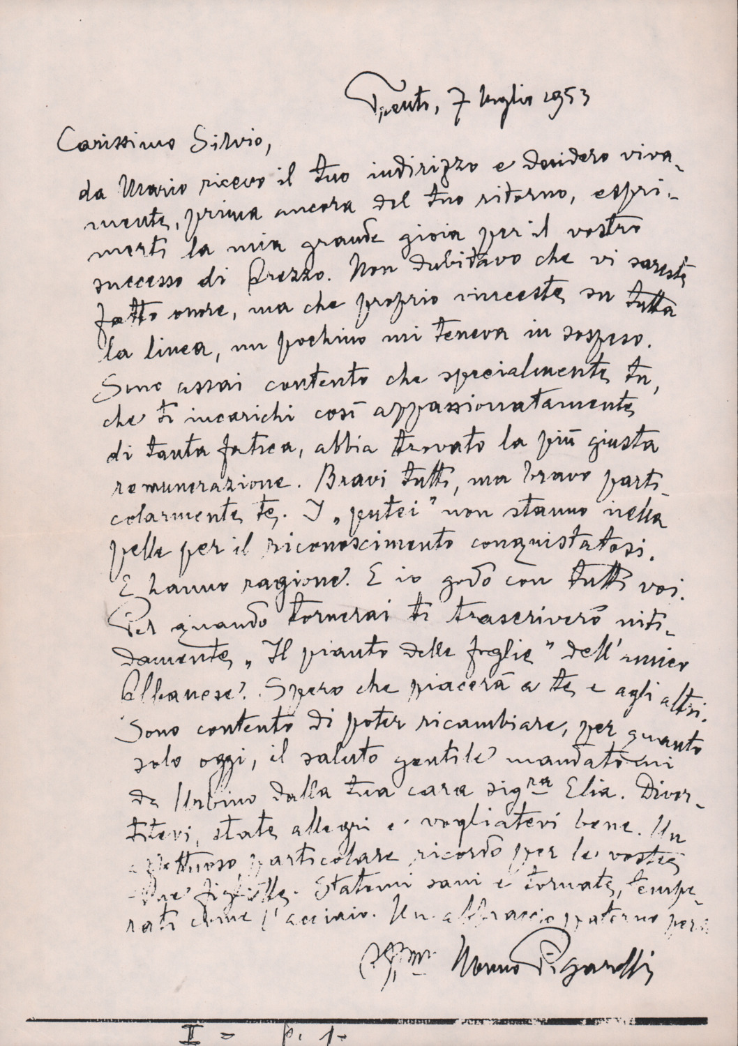 F.4.1.2 - Nota di Silvio Pedrotti riguardante 27 canti ricopiati dal manoscritto. 1 c. manoscritta e 1 fotocopia.