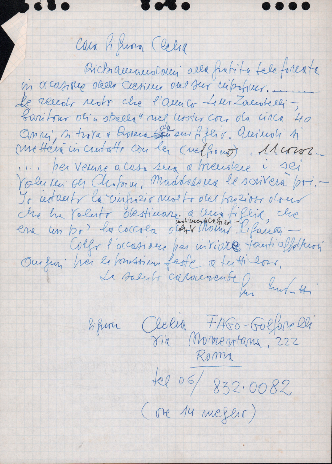 F.5.1.7 - Silvio Pedrotti a Clelia Fago Golfarelli. S.l., s.d. 1 c.