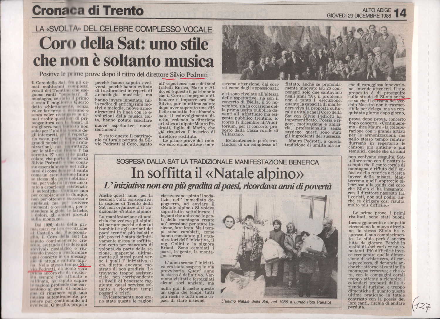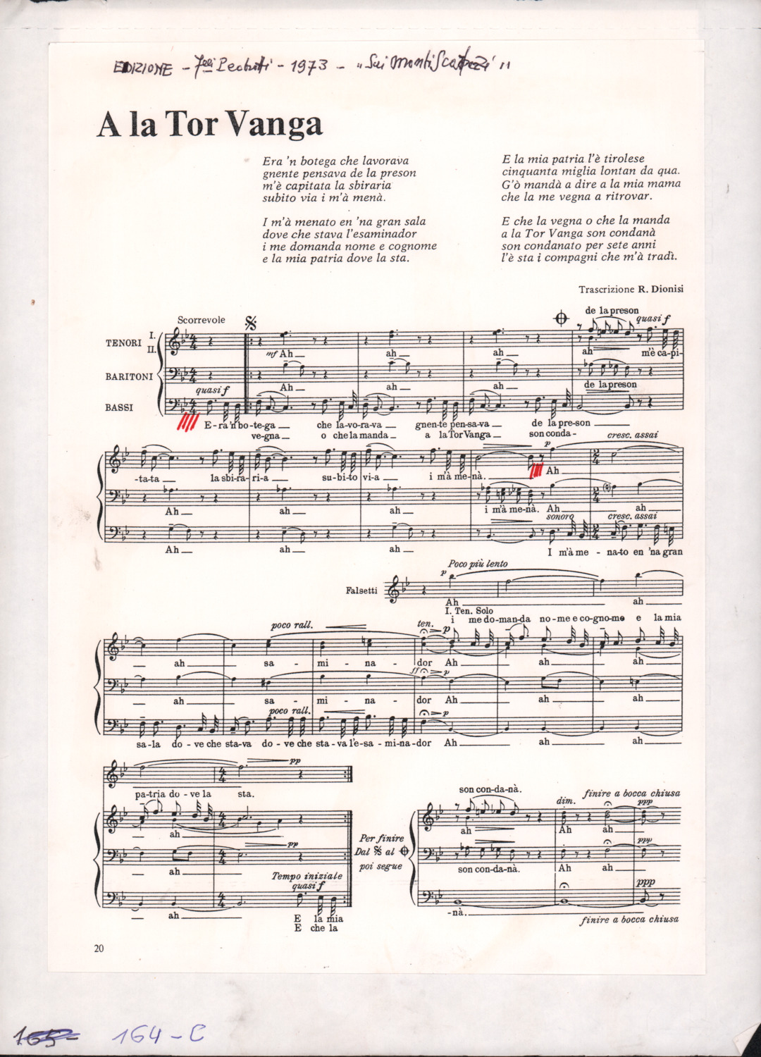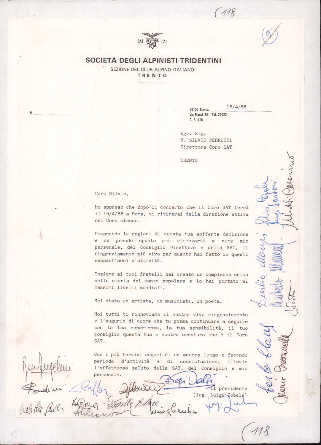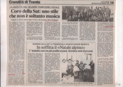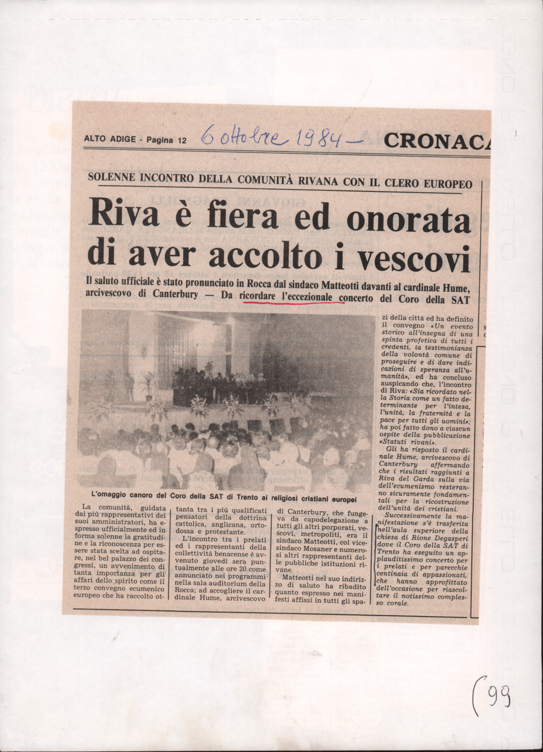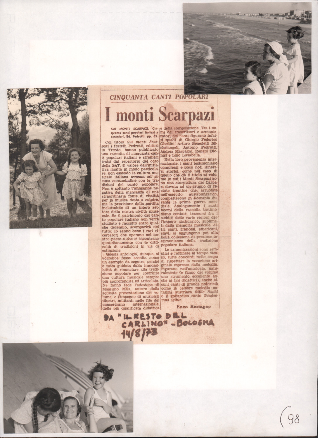 F.7.2.1 - Collage di ritagli di giornali e riviste, fotografie, scritti, partiture e corrispondenza, incollati o stampati su fogli di carta numerati (82-167), confezionato da Silvio Pedrotti a illustrare la storia personale e del Coro della SAT dalle origini al 1996. 47 cc.
