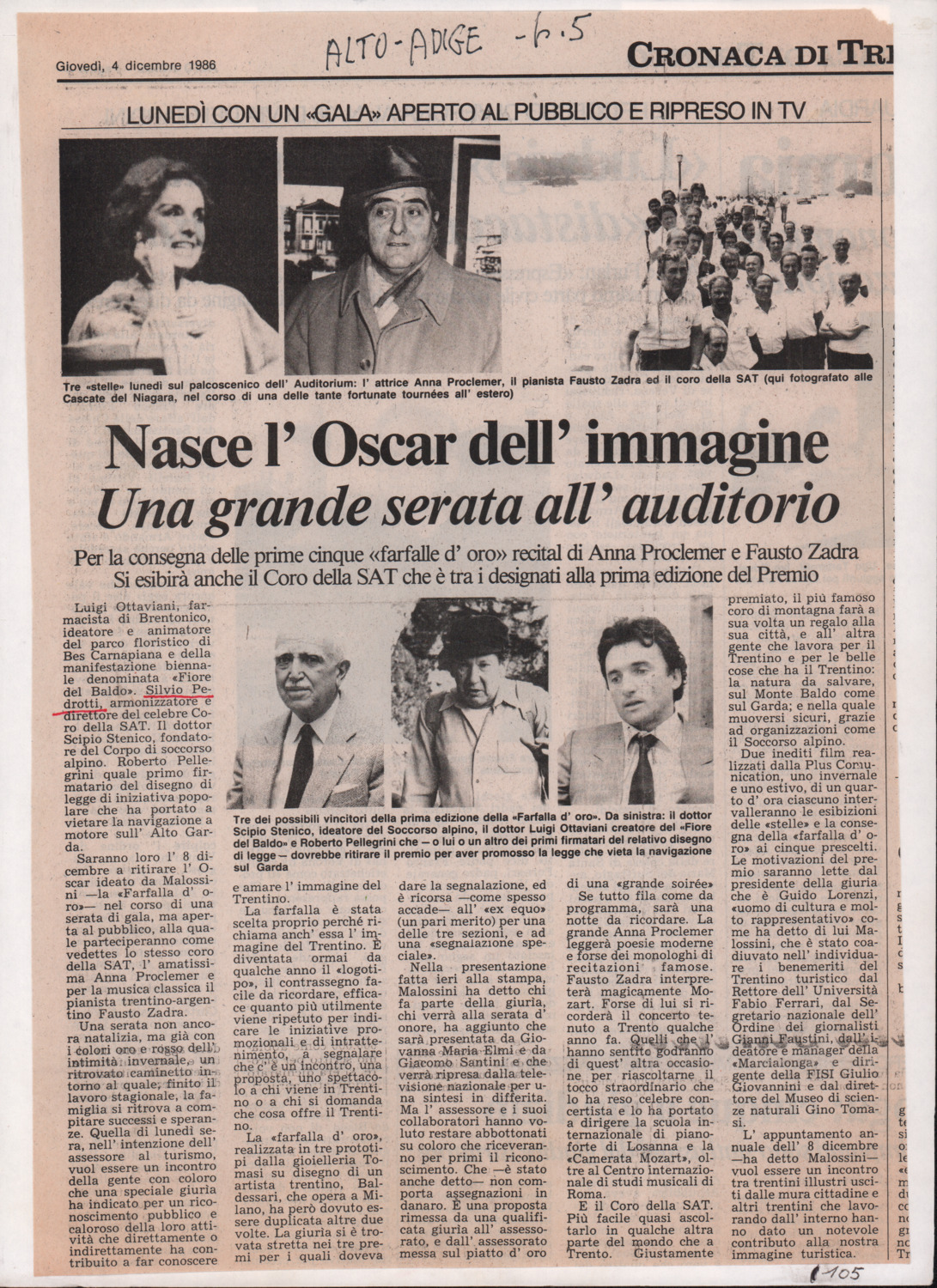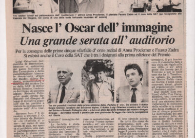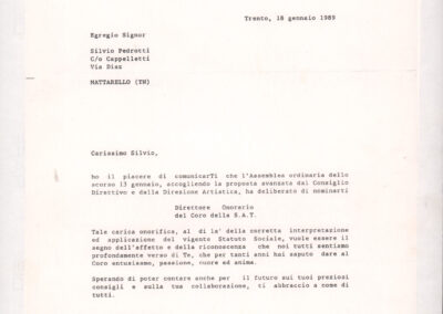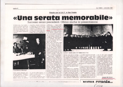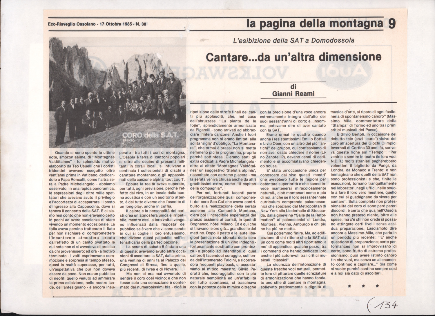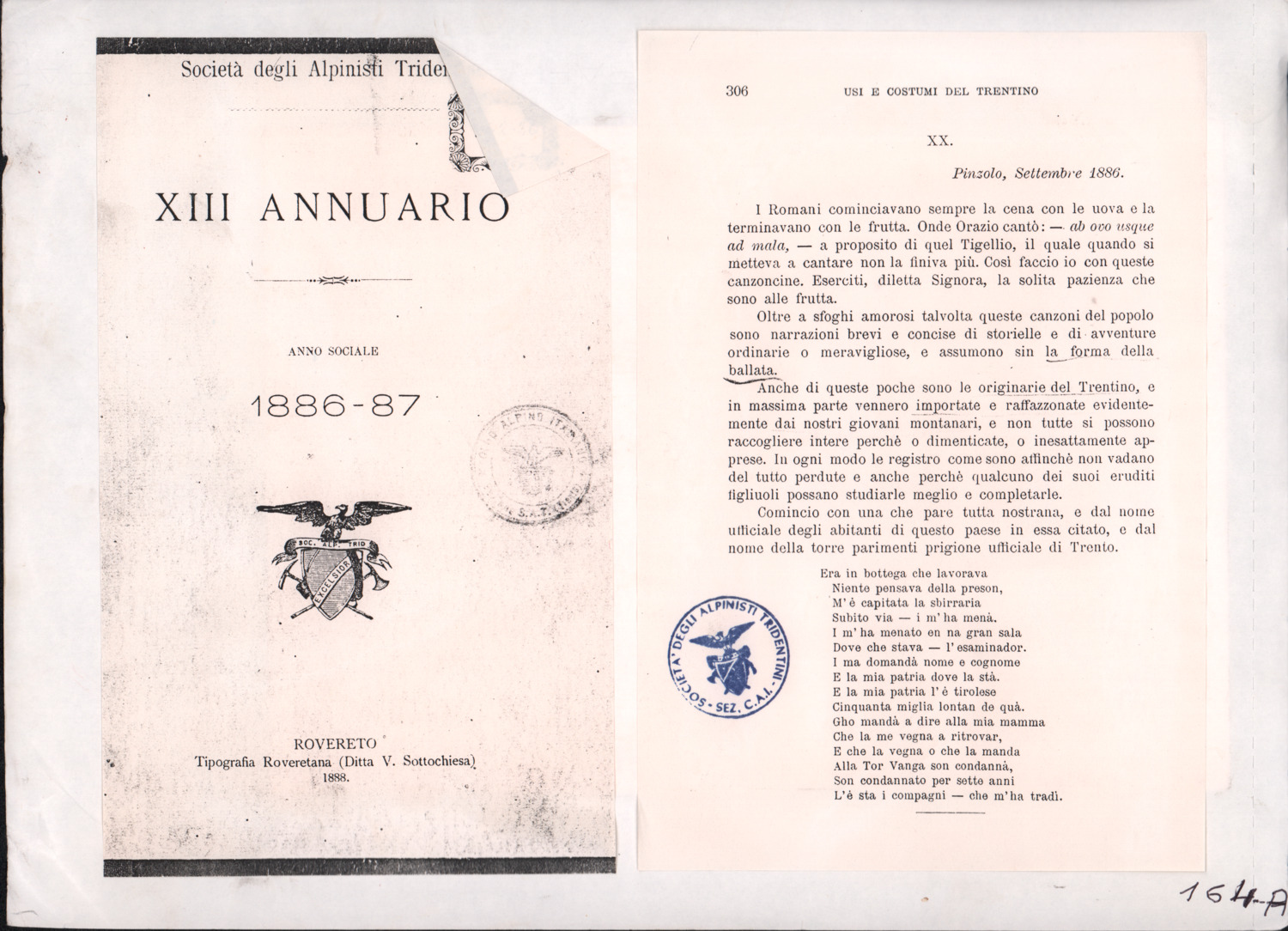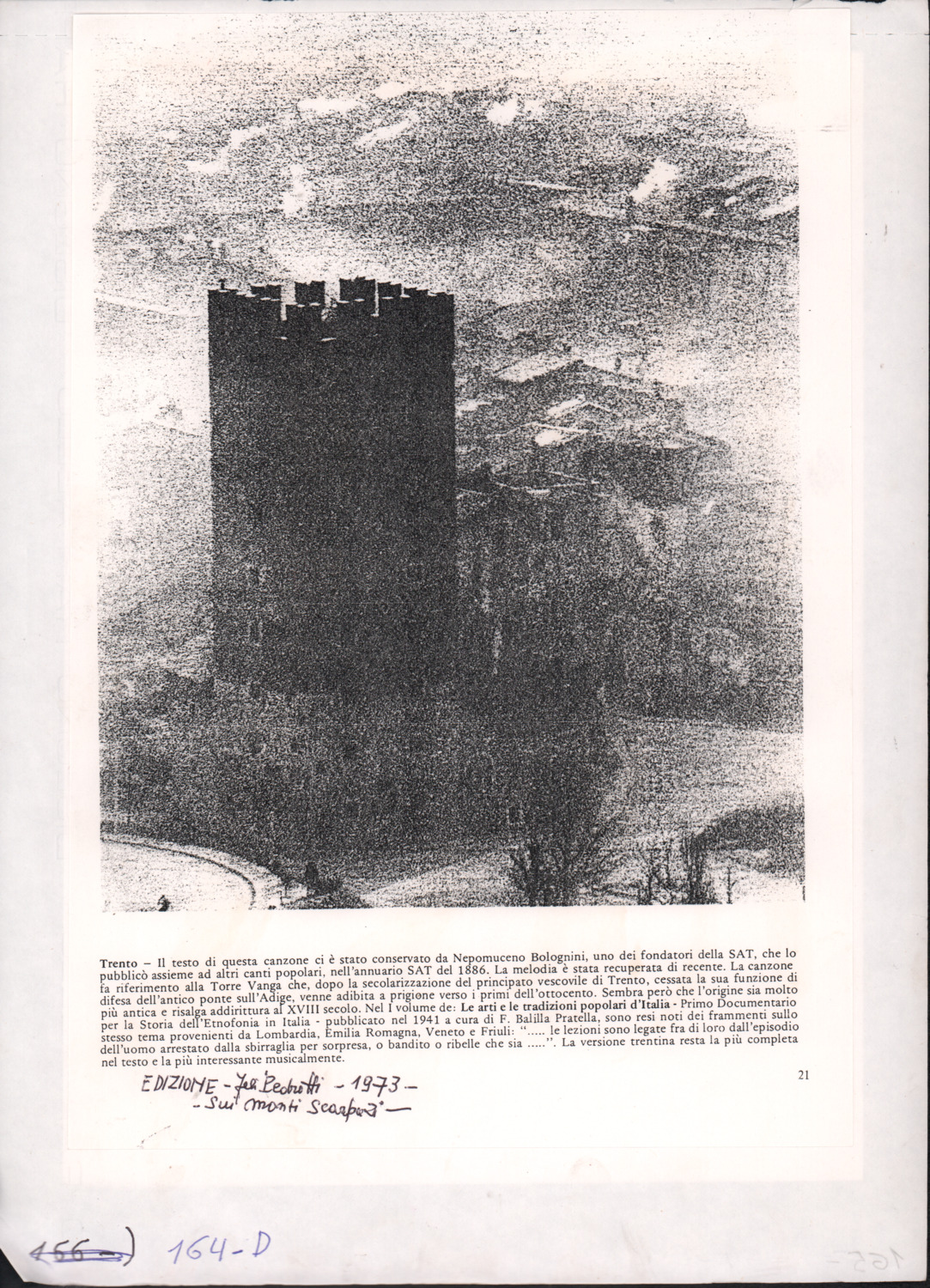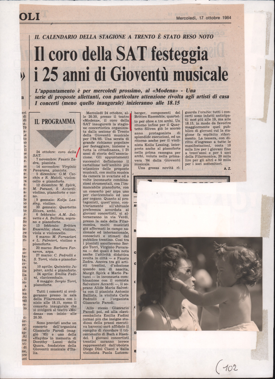 F.7.2.1 - Collage di ritagli di giornali e riviste, fotografie, scritti, partiture e corrispondenza, incollati o stampati su fogli di carta numerati (82-167), confezionato da Silvio Pedrotti a illustrare la storia personale e del Coro della SAT dalle origini al 1996. 47 cc.
