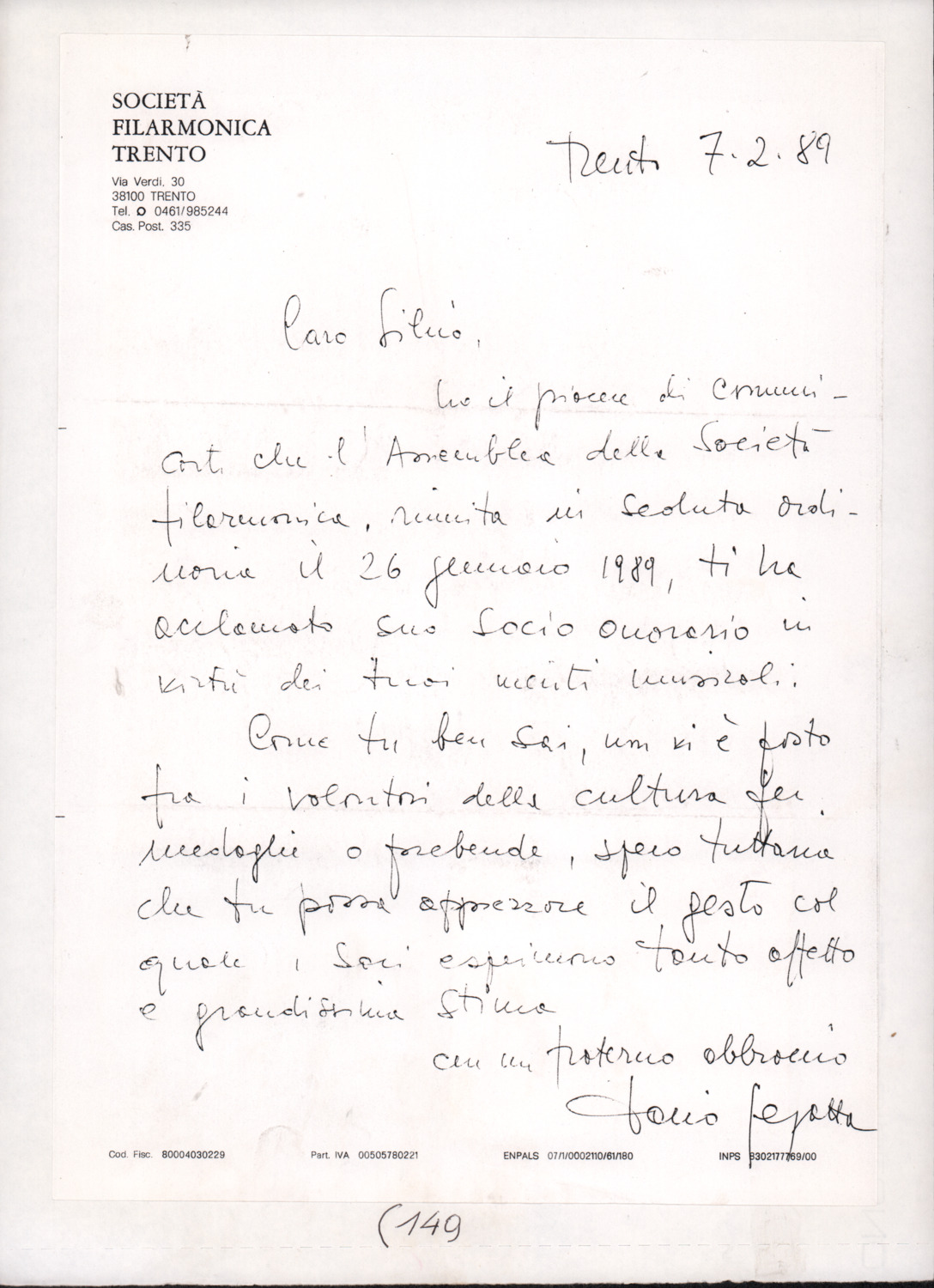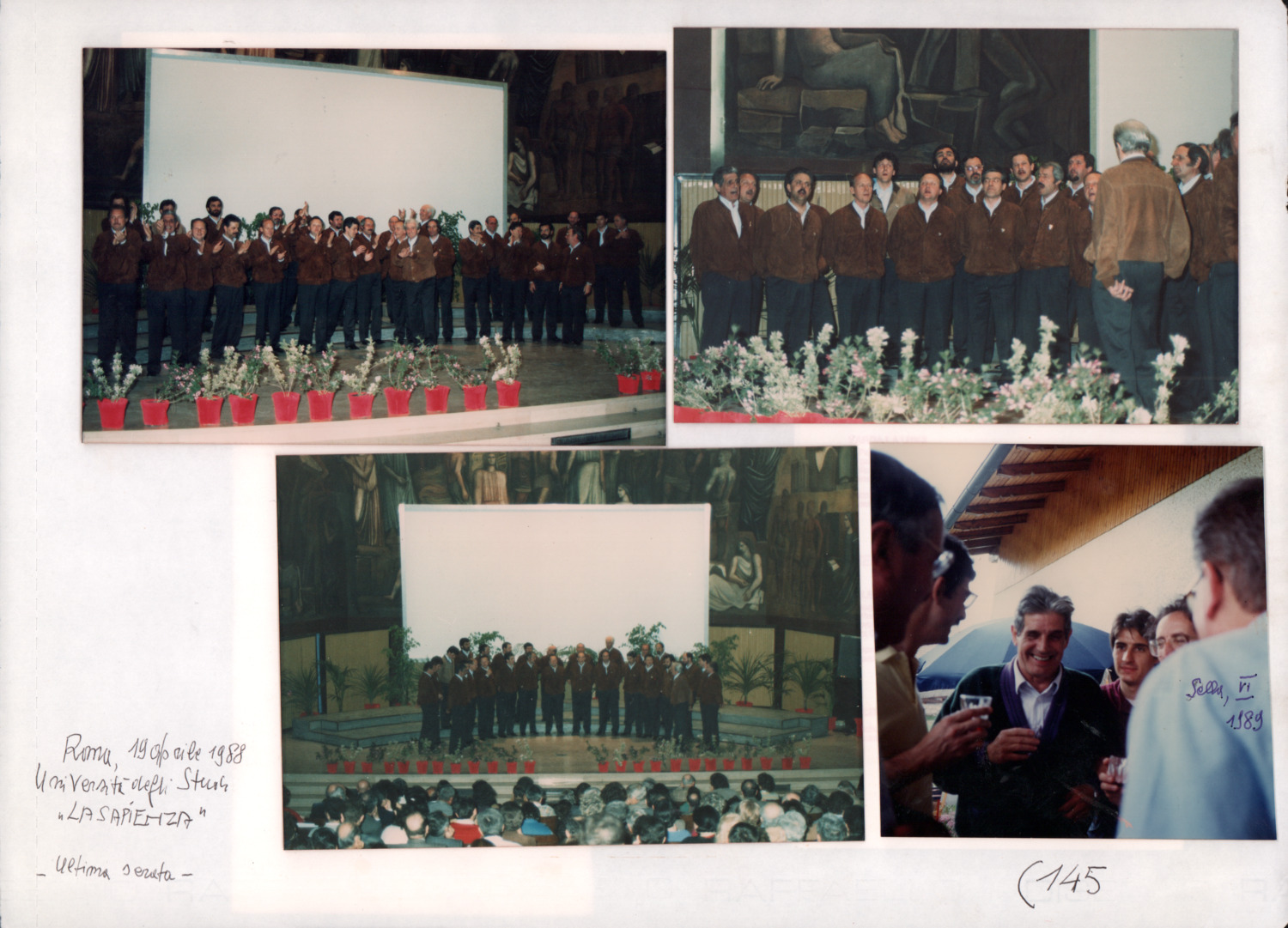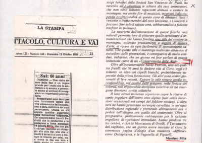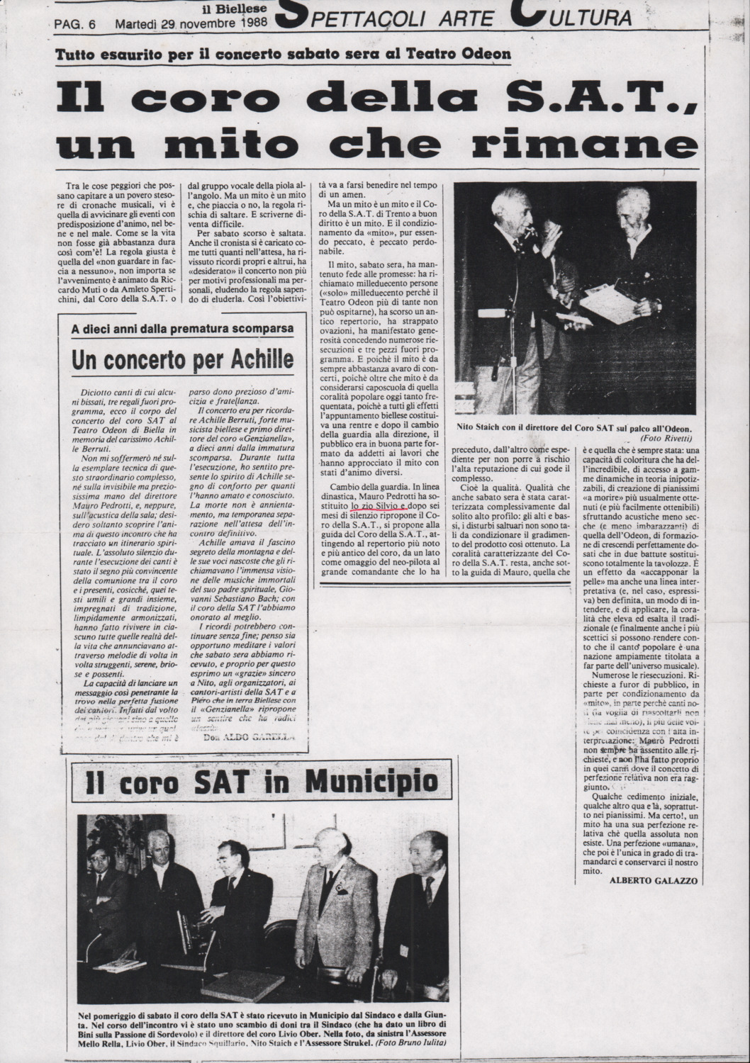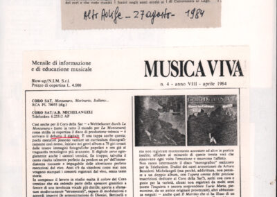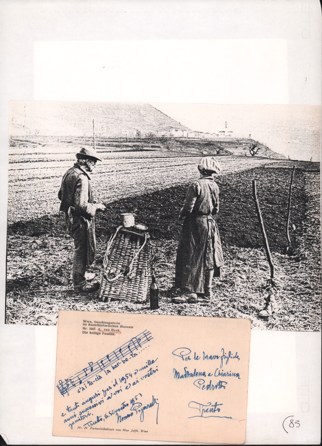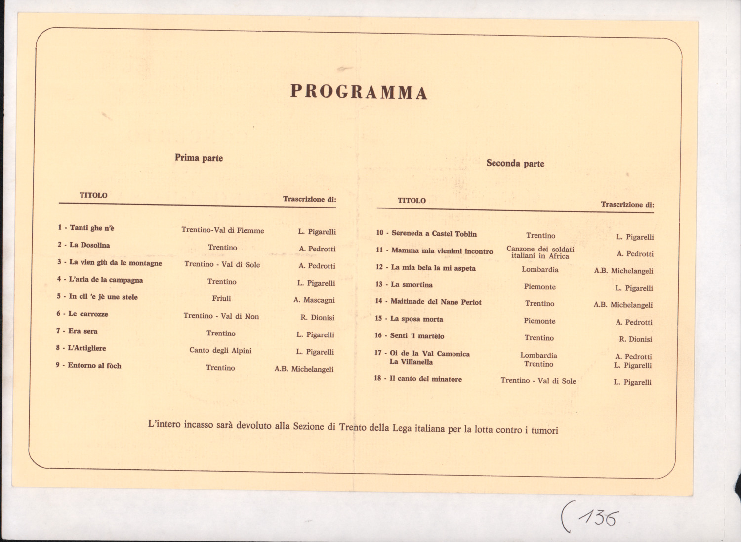 F.7.2.1 - Collage di ritagli di giornali e riviste, fotografie, scritti, partiture e corrispondenza, incollati o stampati su fogli di carta numerati (82-167), confezionato da Silvio Pedrotti a illustrare la storia personale e del Coro della SAT dalle origini al 1996. 47 cc.